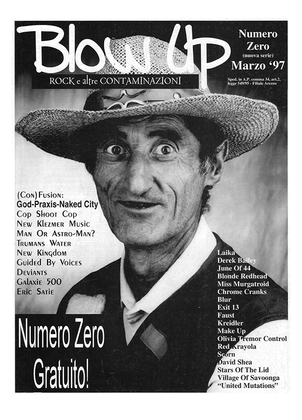 Keywords:BLOW UP #0 (Mar. '97) Confusion (God, Naked City, Praxis) Trumans Water + Soul-Junk Man Or Astro-man? New Kingdom New Kletzmer Trio + Kletka Red Cop Shoot Cop & family (Motherhead Bug, Hugo Largo, Denison Kimball Trio, Soul Coughing, Spongehead) Guided By Voices Deviants + Twink Galaxie 500 Erik Satie Dal post-rock al post-tribolo